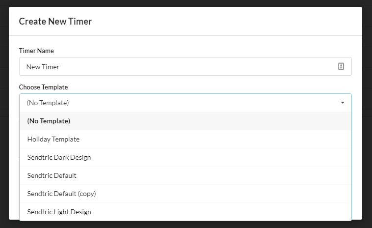 3. To create a new timer with your template, navigate to the “Timers” tab and click “Create New”. You will see your template in the templates dropdown: