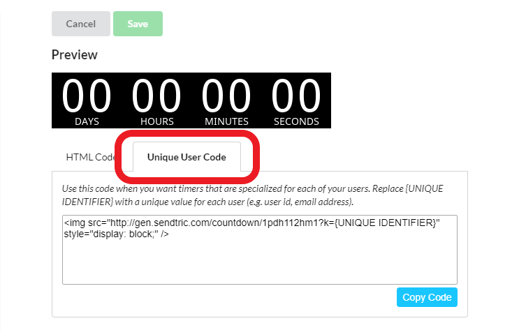 Unique User Timers are a variation of the Perpetual Timer. They always count down the same amount of time like a Perpetual Timer, however they can be tied directly to a user so that if a user returns to the timer at a later time, the timer will remain accurate. This is useful for situations where your timer should always be accurate even if an email is reopened and viewed multiple times.