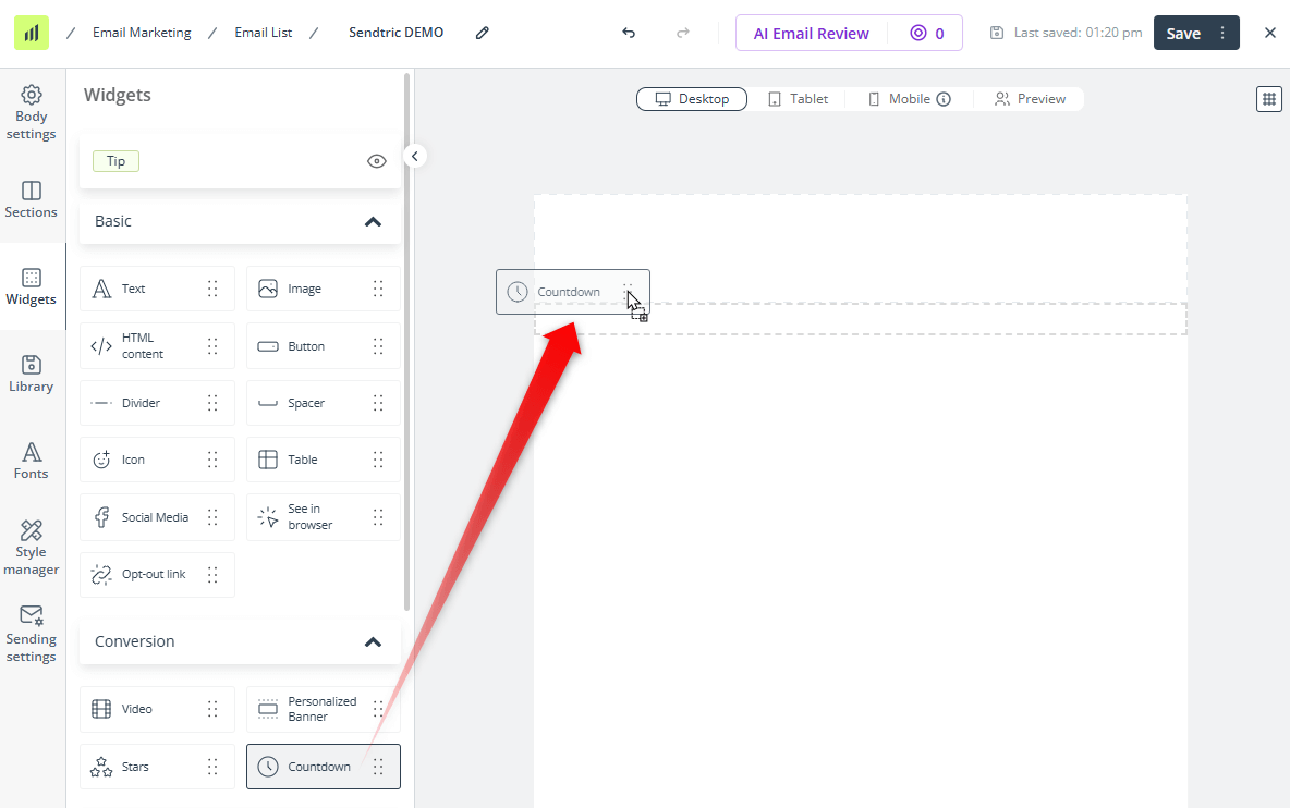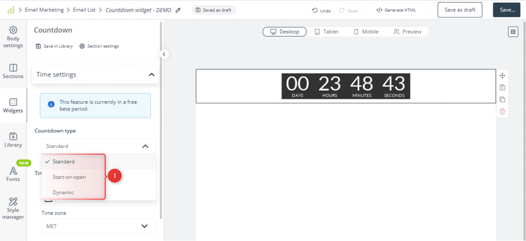 You can add Sendtric’s countdown timers directly in SALESmanago’s Email Design Studio – it’s super easy!