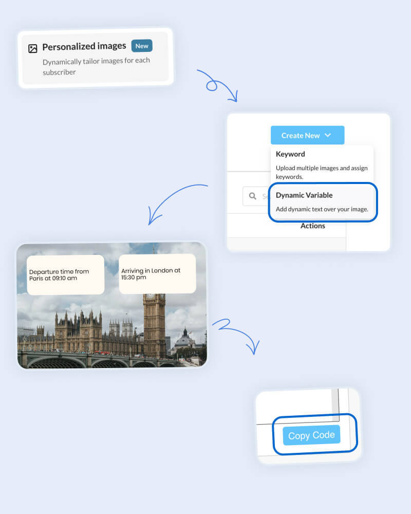 Our image personalisation widget becomes more powerful! Now you can also use personalized text overlay on images! Perfect for before and after emails, custom user preferences, or travel itineraries.