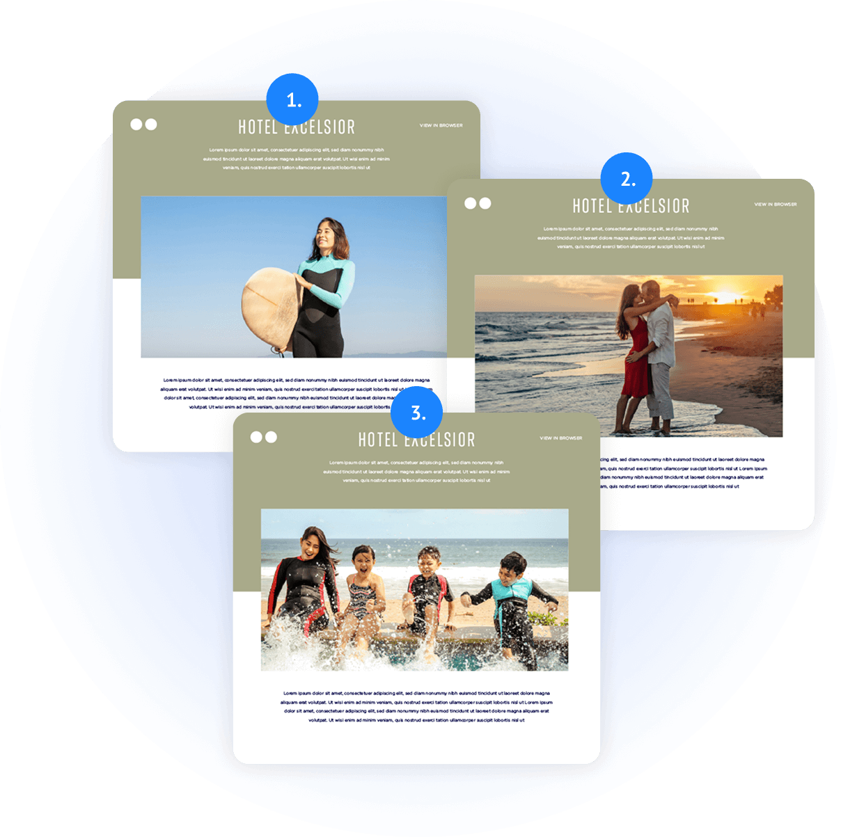 Let’s say you’re a marketing manager at a hotel brand, and you’re launching a summer campaign to boost bookings. You want to target different types of travellers, but don’t want to build and manage three separate emails. Here’s how Personalized Images can help: